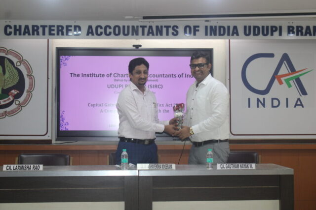The ICAI Udupi Branch organized a Continuing Professional Education (CPE) seminar on “Capital Gains under the Income-tax Act, 2025 – A Comparative Analysis with the Income-tax Act, 1961” on 14th March 2026 at ICAI Bhawan Kunjibettu.